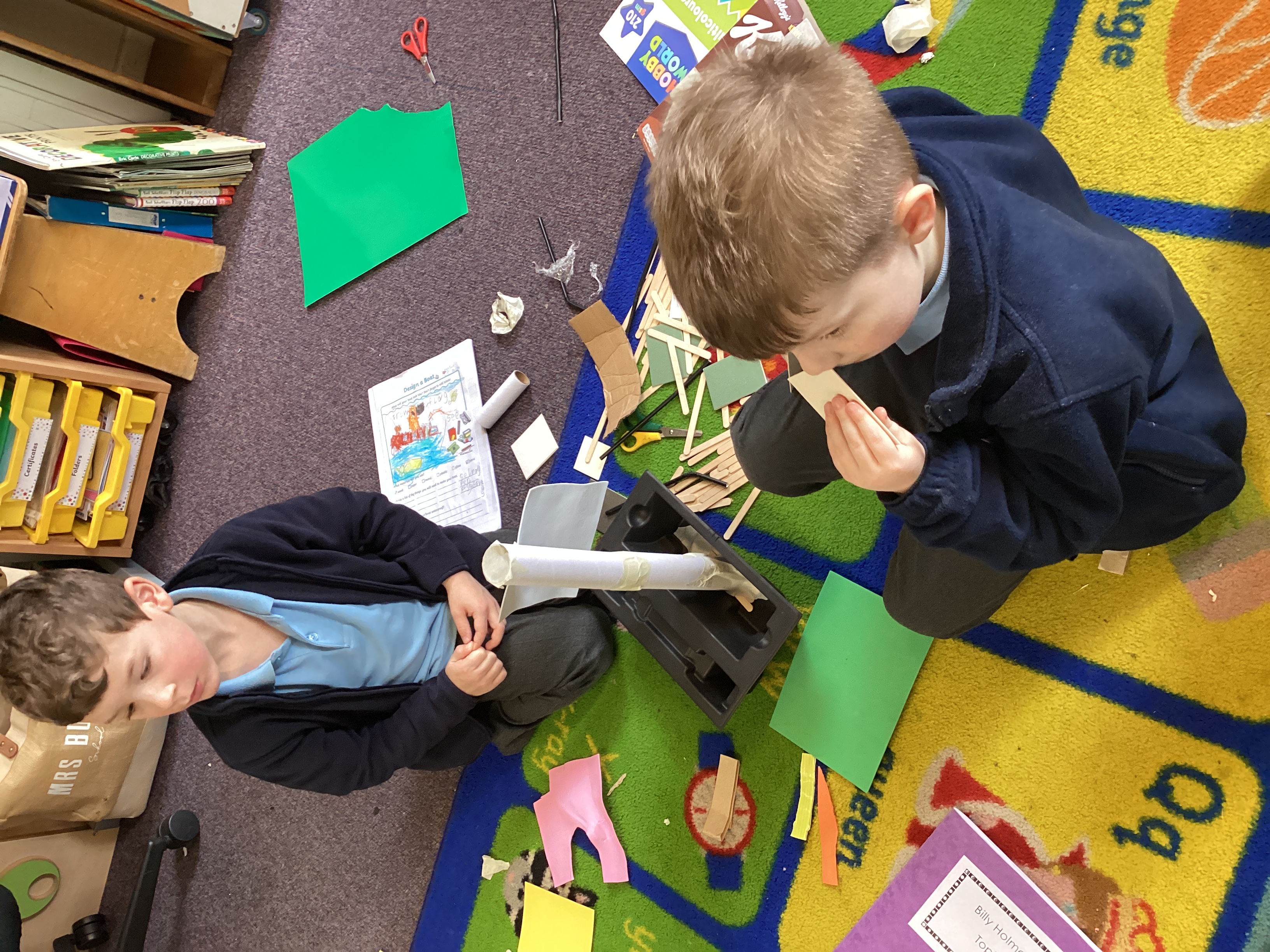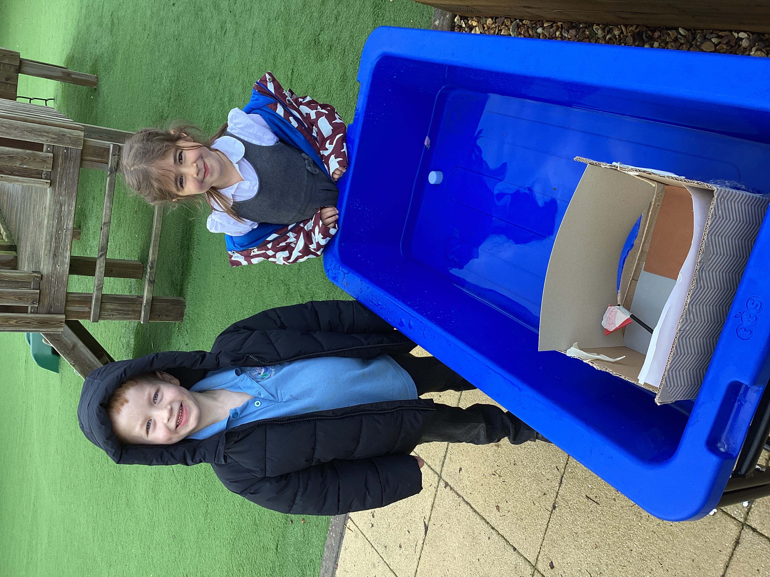 Class 1 designed boats in Design and Technology and then tested them to see if they would sink or float.