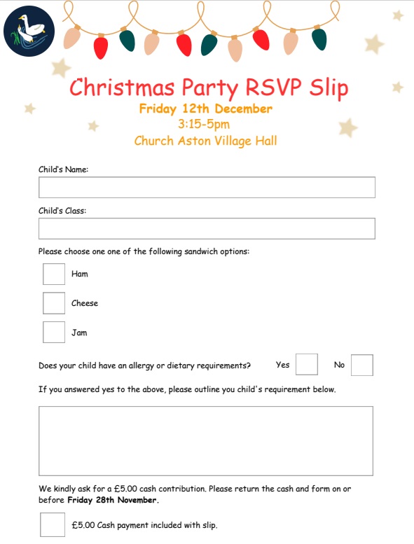 Friday 12th December - Christmas Party 3:15 - 5pm at the Village Hall. The Friends are doing food and will organise activities for the children. Hopefully Santa will visit during the party.