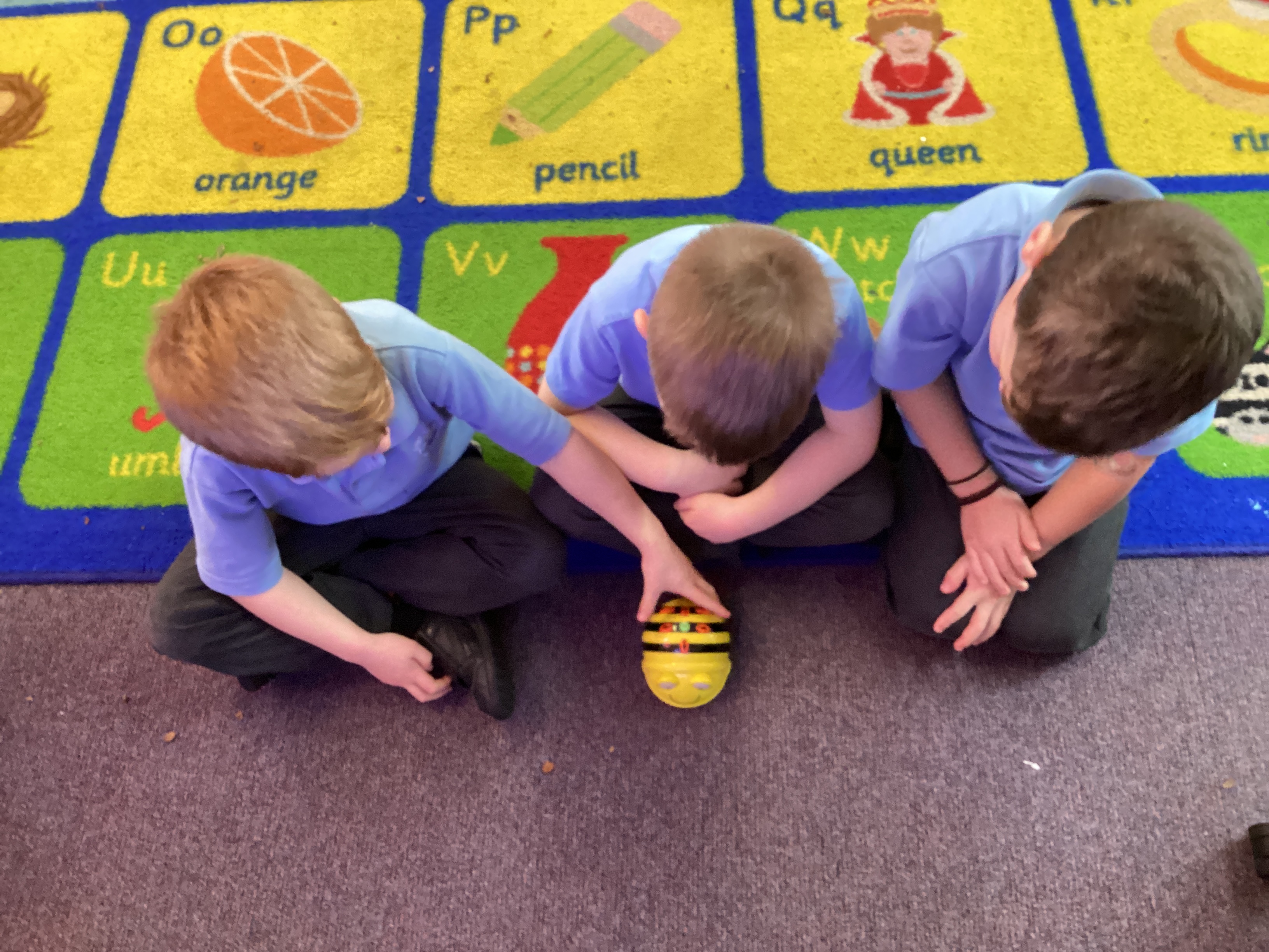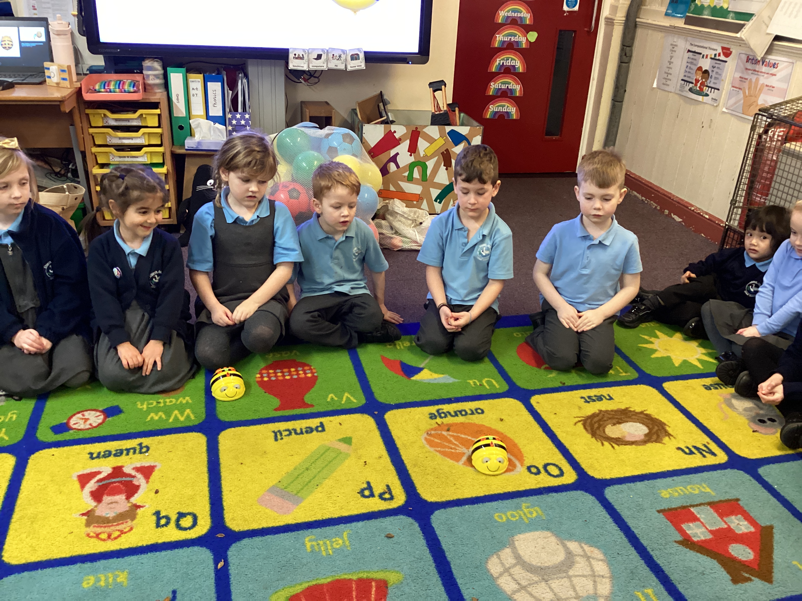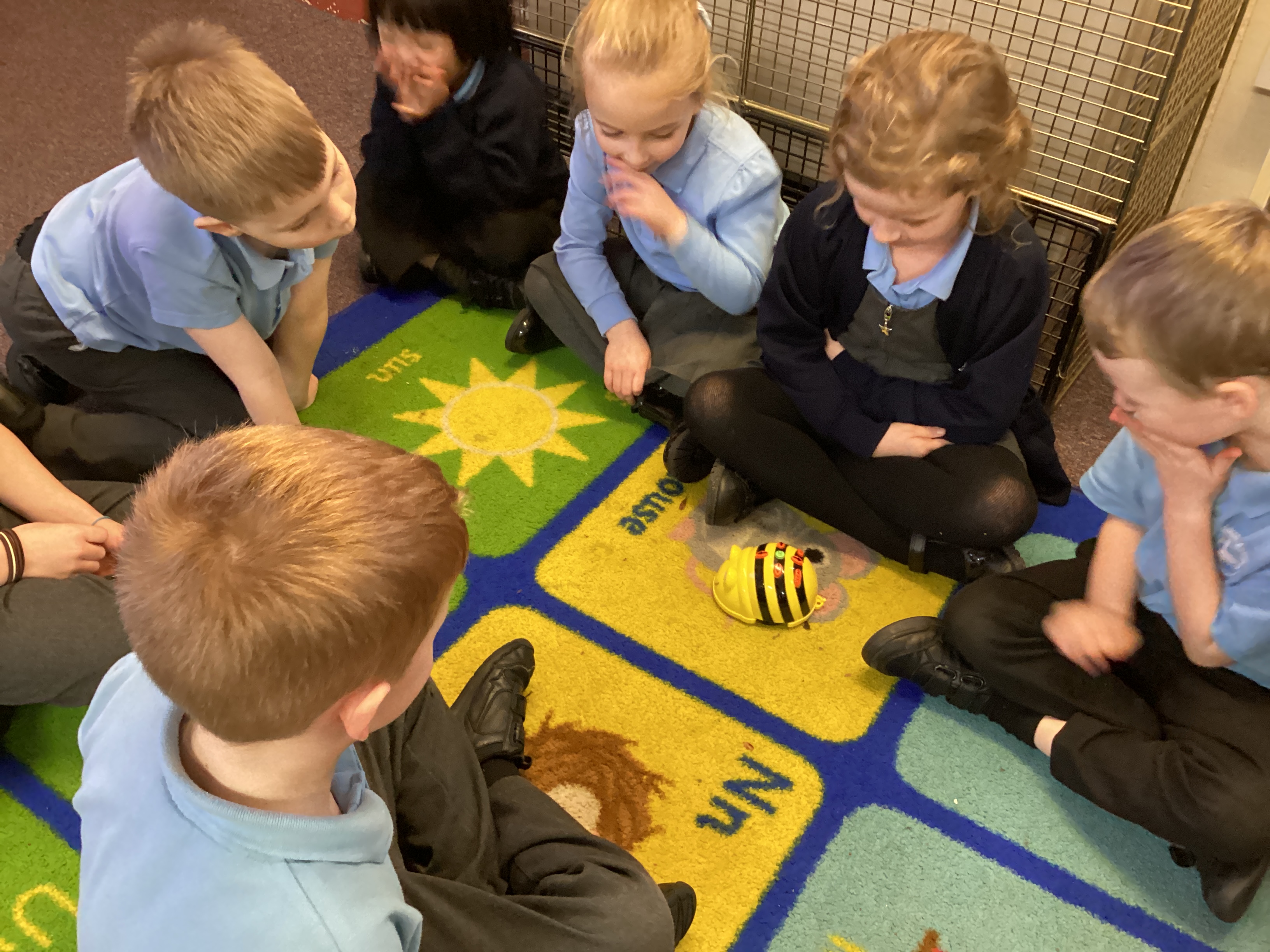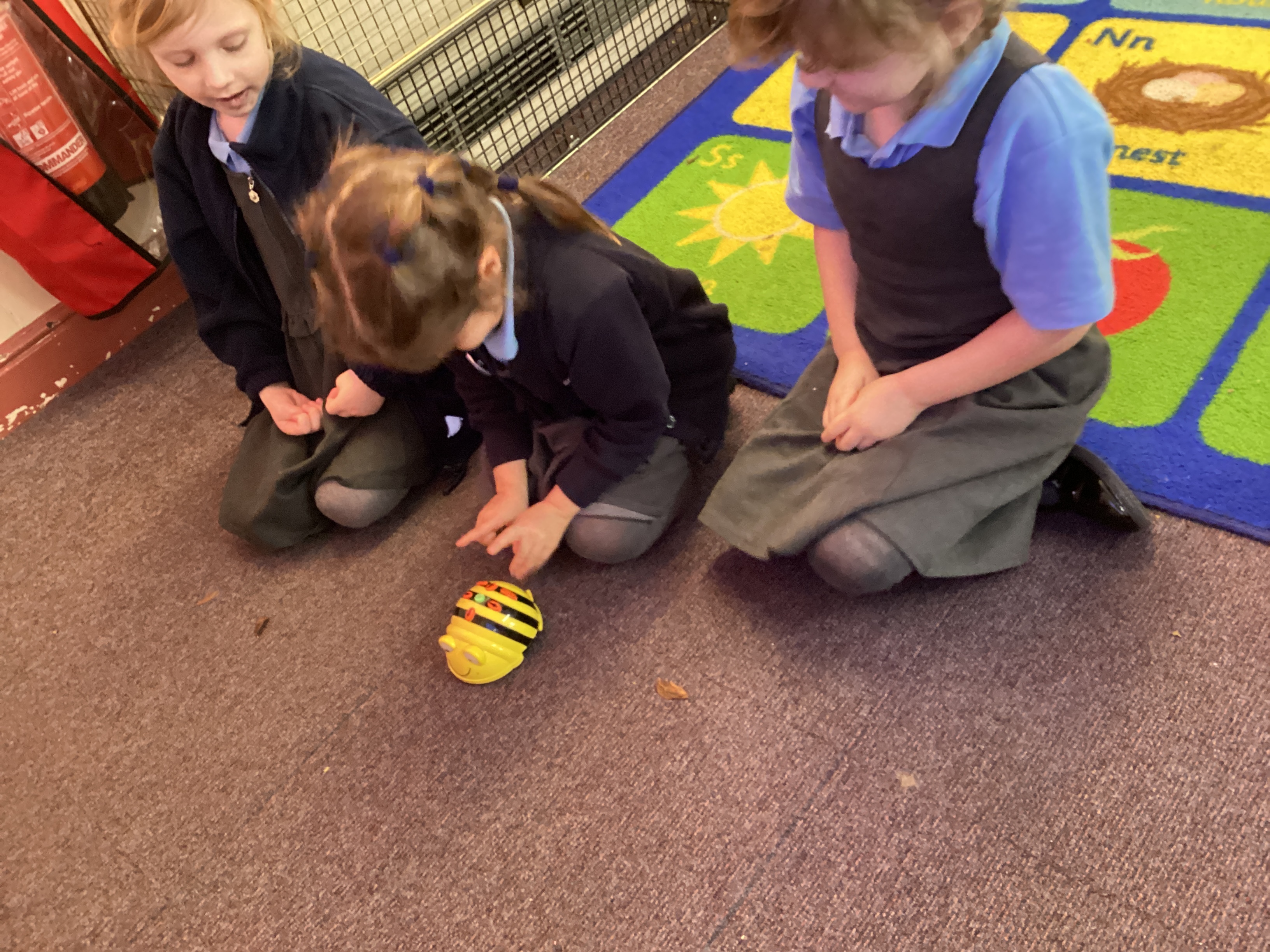 Year 1 children programmed Beebots to move then in a variety of directions to reach destinations. The Year 1 children then went on to demonstrate how to use the Beebots and they all got to to have a go.